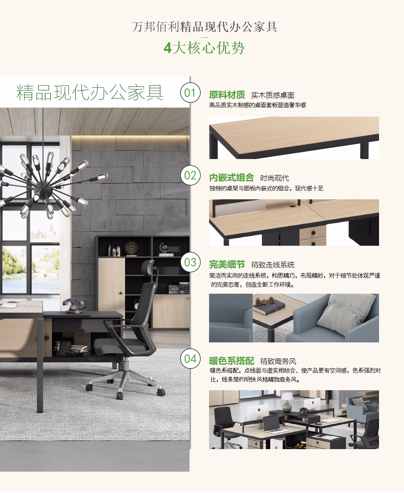 北京萬(wàn)邦佰利家具有限公司是一家專(zhuān)注于辦公家具生產(chǎn)、批發(fā)銷(xiāo)售的公司。銷(xiāo)售的產(chǎn)品有:班臺(tái)、經(jīng)理桌椅、會(huì)議桌椅、員工桌椅、文件柜、密集柜、視屏?xí)h桌、辦公沙發(fā)、學(xué)校家具、銀行家具、戶(hù)外家具、醫(yī)院家具等產(chǎn)品,公司自成立以來(lái)始終堅(jiān)持以人才為本、誠(chéng)信立業(yè)的經(jīng)營(yíng)原則,堅(jiān)持用企業(yè)文化提升企業(yè)核心競(jìng)爭(zhēng)力,使企業(yè)在發(fā)展中處于良好的形象.我公司主要服務(wù)于企業(yè)單位的家具定制服務(wù),為各大企業(yè)量身定做整體環(huán)境的家具設(shè)計(jì)全程服務(wù),我們的整體產(chǎn)品服務(wù)...